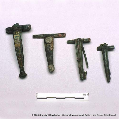 Brooches such as these were worn both by men and women to secure the Roman dress cloak. They were normally of bronze and were commonly decorated with coloured enamels.